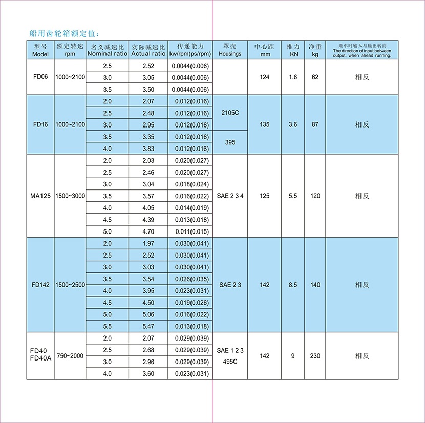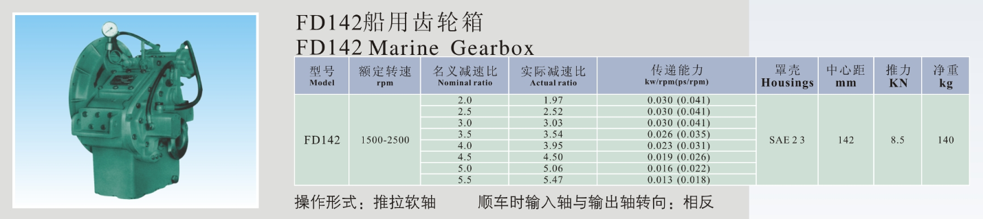 前進名義減速比: 3 輸入轉速: 1500-2500rpm