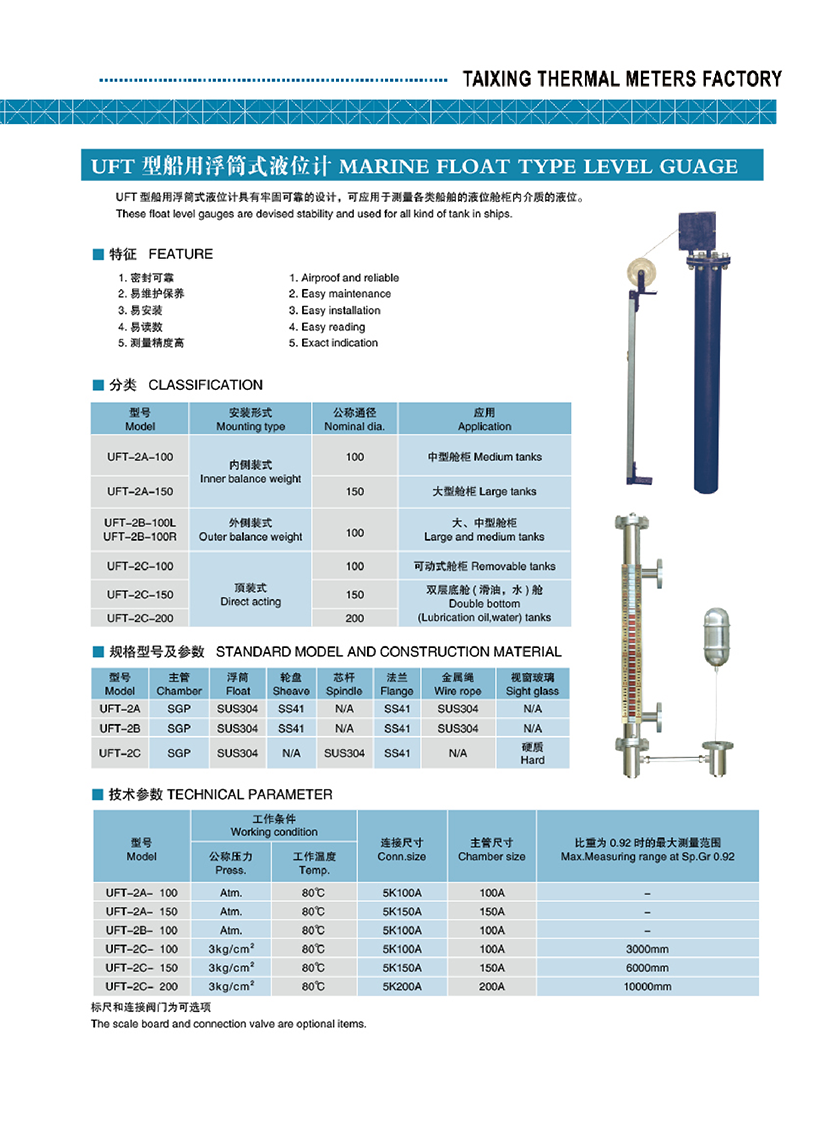 UFT型船用浮筒式液位計