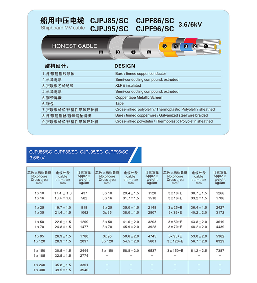 | 類型: | 船用中壓電纜 | 名義直徑: | 22.6±1.5mm |