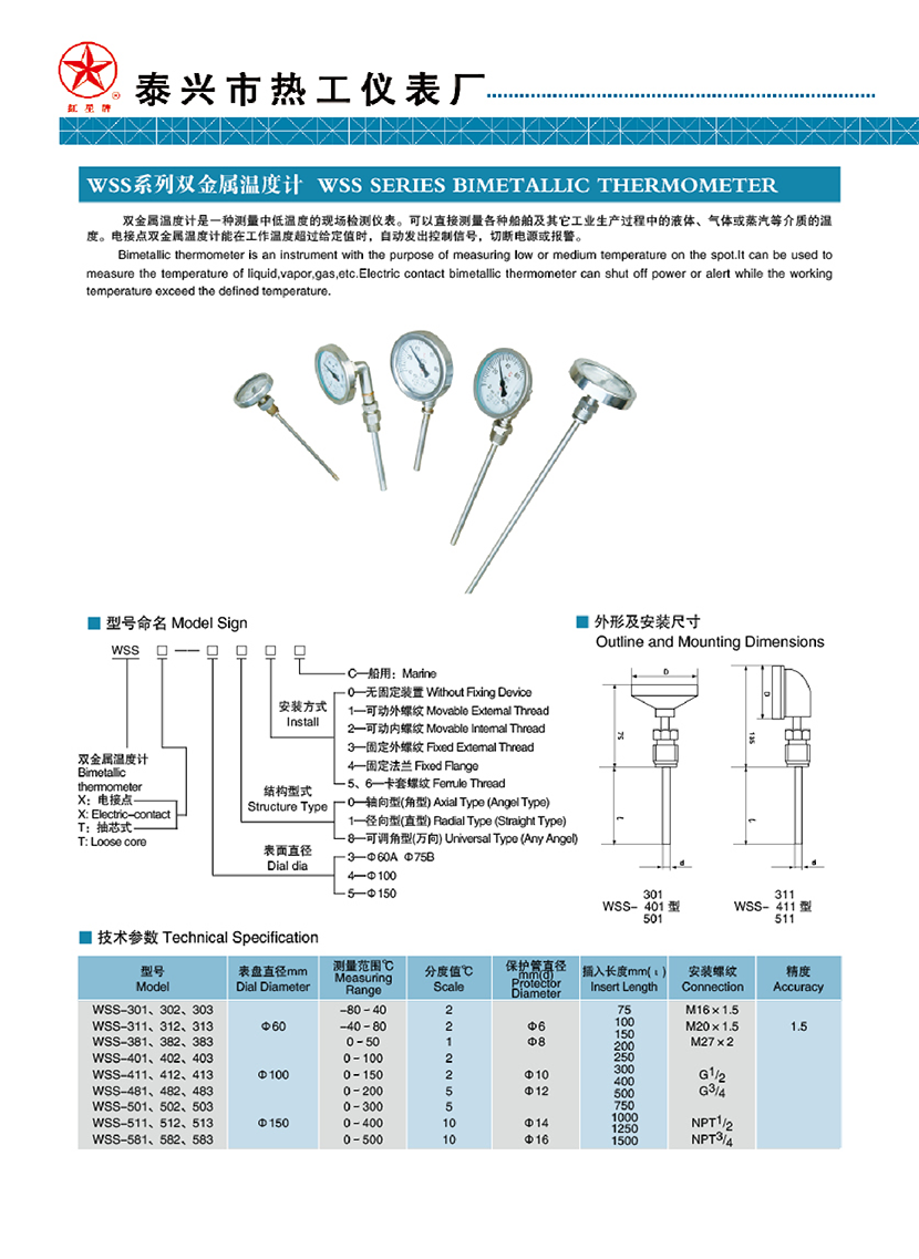| 測量范圍: | 0~50℃ | 直徑: | 60/100/150mm |